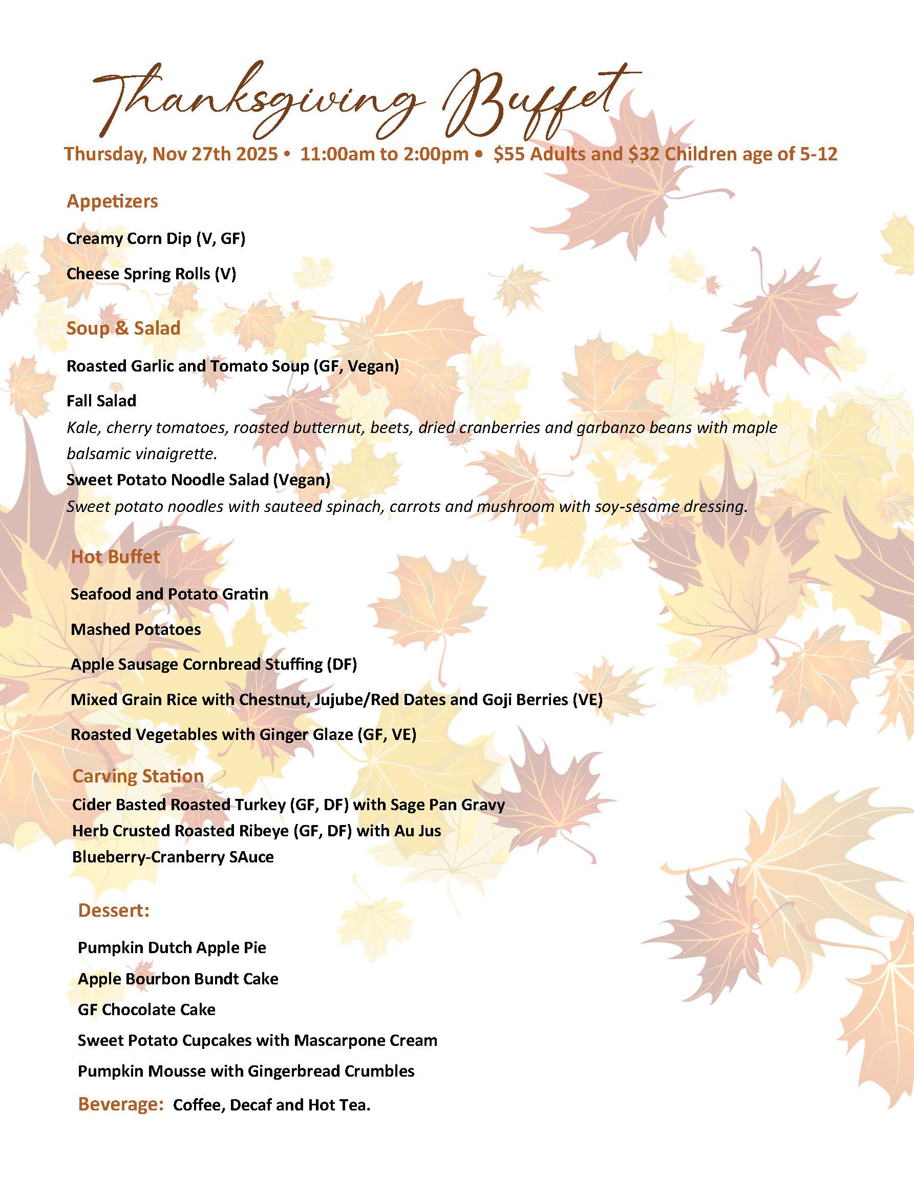 THANKSGIVING BUFFET NOVEMBER 27, 2025