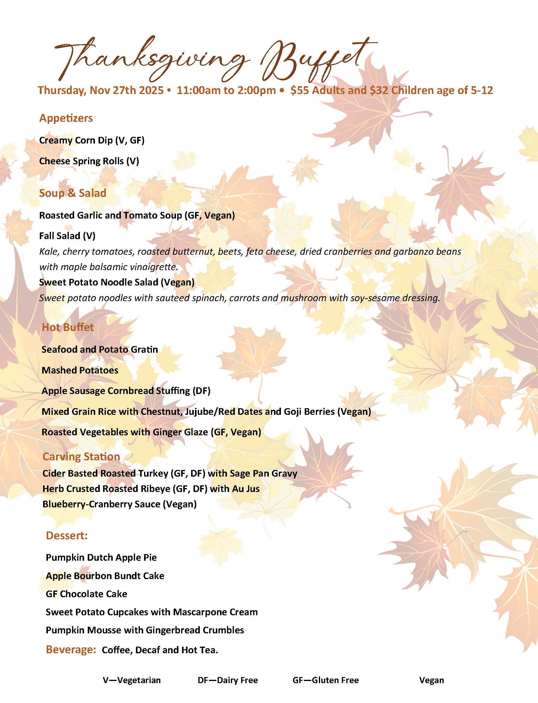 THANKSGIVING BUFFET NOVEMBER 27, 2025